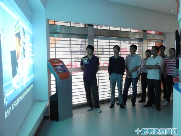 此次调研活动由系主任夏德洲带队,副主任欧阳艳阶、副书记莫足琴、项目研发团队梁铭、张明、王家旭老师以及部分学生代表参加。中国联通十堰分公司运维部经理助理兼维护中心主任尚燕兵与项目研发团队老师一起探讨项目研发方案和软件开发平台、工具等方面的问题;张湾营业厅经理张梁向师生演示了3G技术在无线通讯中的广泛应用,向大家展示了即将上市的Apple 4手机多种服务功能,带领该系师生一起参观了3G体验厅,并向师生介绍了3G技术在市场上的发展前景,提出了3G应用的广泛需求。
